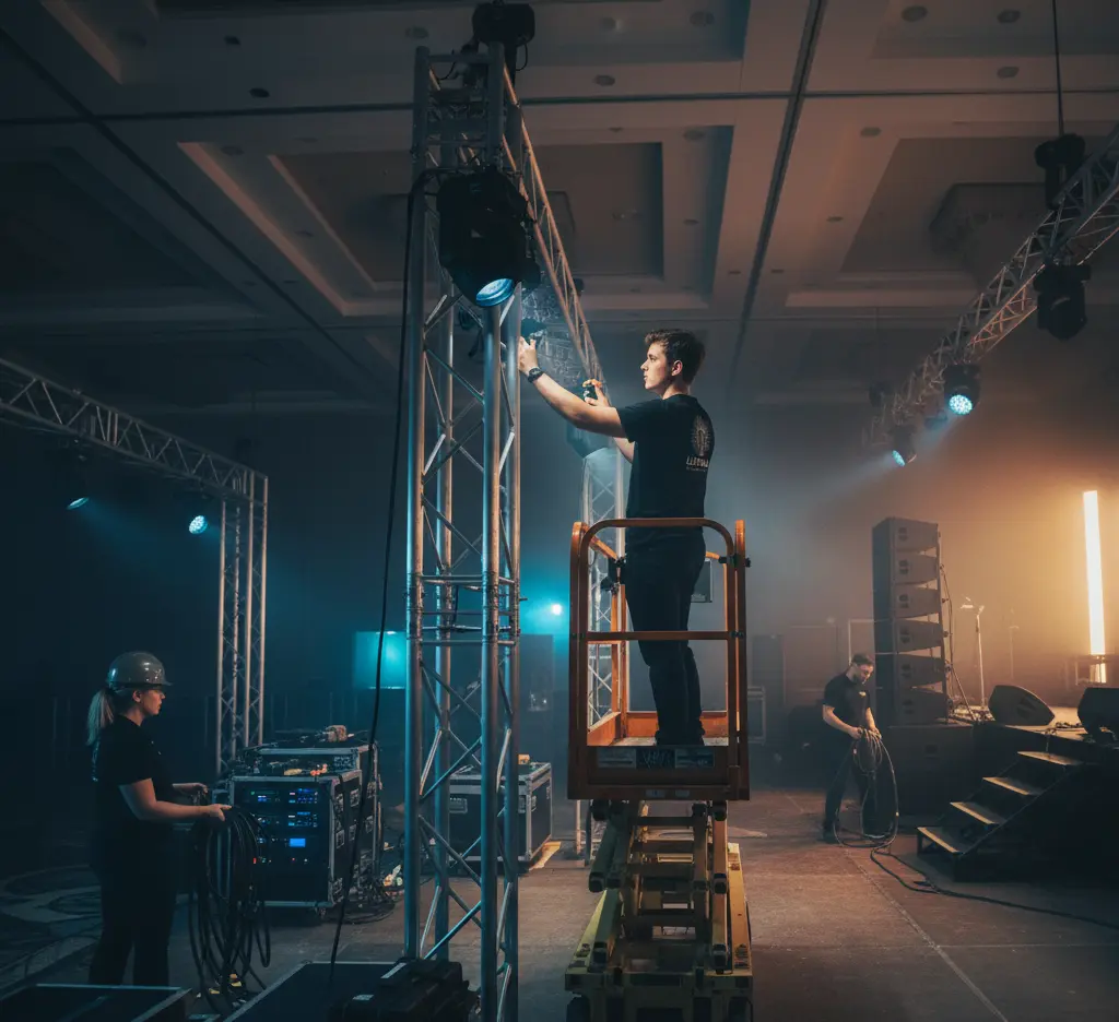 Our team of skilled technicians and certified production managers handles every aspect of the setup and strike. We use industry-best equipment and meticulous planning to ensure every light cue, microphone connection, and graphic transition is delivered with absolute precision.